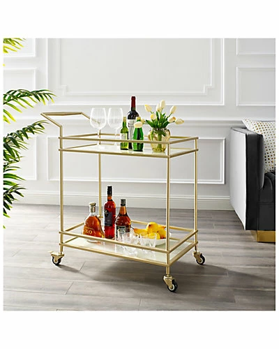 - Design details: Your home deserves nothing but the best. Impress your guests with this versatile indoor bar cart. It is a perfect storage solution for a cocktail. The caster wheels make it easy to keep this cart where the party is happening. This utility cart is great for the kitchen, dining room, bedroom, bathroom and home office. It is perfect for holding dinnerware, beverages, books, bathroom accessories. The carts metallic finish and simple straight lines design add modern appeal, and the tempered glass/MDF shelves provide exceptional display and storage capacity. On the top shelf you can display your treats and drinks and bottom shelf is perfect for wine bottles and stemware storage; This bar cart is cool compliment to any modern setting whether it is against the wall or free standing. It is sure to appeal to your more refined taste. Bring contemporary charm from the kitchen to your living room, organizing your social hour and performing the royal treatment for your guests