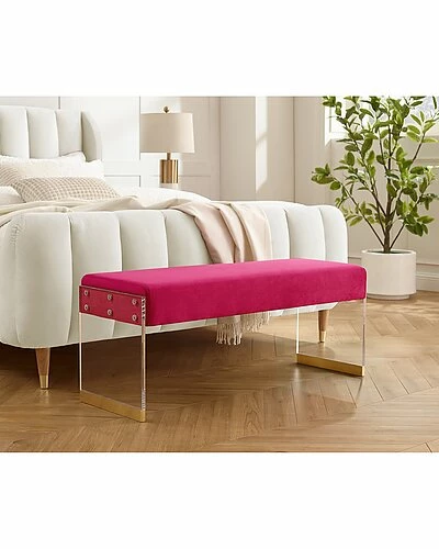 - The luxe bench is sure to complement any modern or contemporary space in your home. Indulge with luxurious and sultry velvet fabric, sleek acrylic legs with metal base, as well as high density foam for ultimate comfort and quality. This bench enhances any space with luxury and chicness. Place this bench in your living room, bedroom or entryway for pleasing aesthetics and functionality. It comes in gorgeous colors to blend in or stand out in any room.