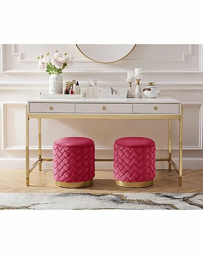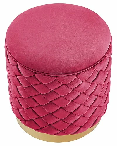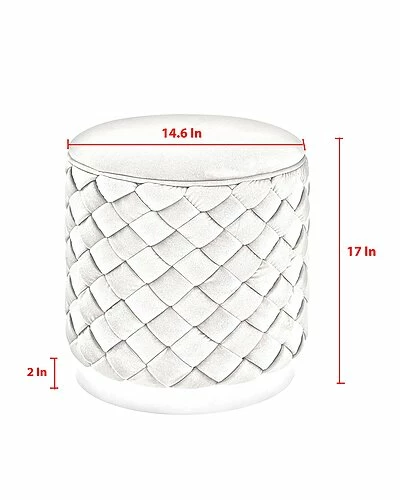 - Decorate your home with this elegant ottoman that not only provides amazing visual options, but also serves as occasional seating. Round ottoman gives a very neat and classic look to any area in your home. This smart piece offers a glamorous surrounding with its metal base. Crafted from solid and manufactured wood, it features velvet upholstery and a foam cushion which is perfect for seating. This ottomans style blends well with any existing decor, making your home more elegant and neat-looking.