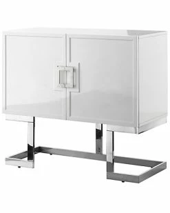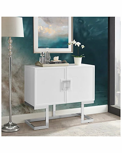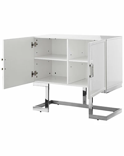 - Our clean-lined accent cabinet makes a statement no matter where it’s stationed, giving eye-catching contemporary appeal to your space. Crafted from manufactured wood, our cabinet has an open air stainless steel base design to keep your living space visuals clean. It features two doors to reveal two adjustable shelves (4 compartments) for tucking away a variety of objects, providing that modern flair with a fresh look in any room.