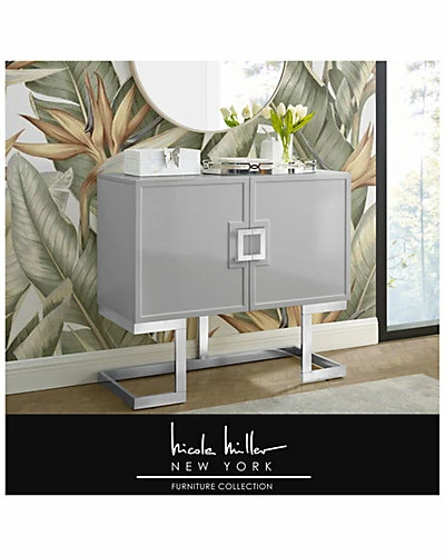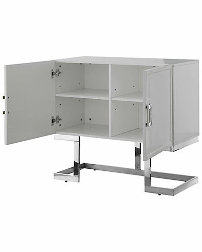 - Our clean-lined accent cabinet makes a statement no matter where it’s stationed, giving eye-catching contemporary appeal to your space. Crafted from manufactured wood, our cabinet has an open air stainless steel base design to keep your living space visuals clean. It features two doors to reveal two adjustable shelves (4 compartments) for tucking away a variety of objects, providing that modern flair with a fresh look in any room.