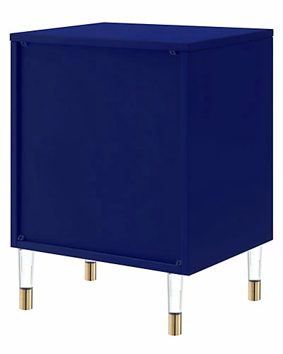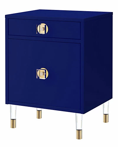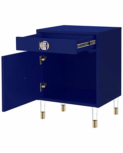 - Design details: Our side table infuses an exquisite accent to your main furniture to create that modern cozy atmosphere in your home. Crafted from durable eco-friendly MDF in a sleek high gloss finish with acrylic leg and knob, this elegant 1 drawer 1 door piece is ideal as an end table in your living room or a nightstand in your bedroom. Spacious ample storage is perfect for stashing and organizing books, magazines, accessories and other living essentials safely out of sight. This item requires assembly upon delivery; This unique luxe side table with acrylic legs in gold metal tip and acrylic square knobs infuses an exquisite accent to your main furniture to create that modern cozy atmosphere in your home and enhances the surrounding decor