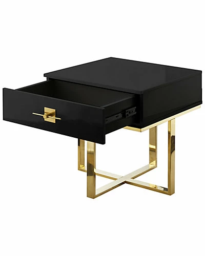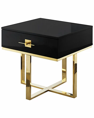 - Sleek and stylish combination of materials gives this side table/end table a fresh contemporary look. The tables square top has a high gloss lacquer finish while stainless steel base and drawer pull handle have a polished look. If you love the shiny modern style, this clean and glamorous side table will immediately capture your attention, providing the look you want. Featuring one drawer for storage and beautiful shiny hardware, this exquisite piece will quickly become a favorite item of any space while easily serving its purpose