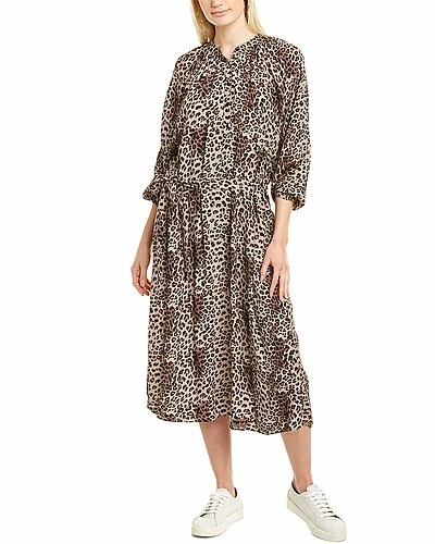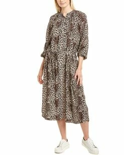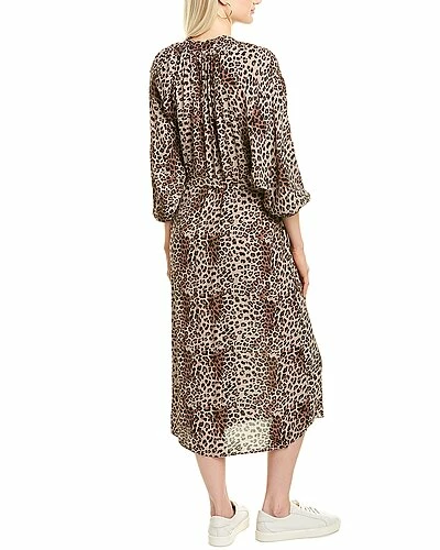 - Design details: shirred mock collar, 3/4-length blouson sleeves, and self-tie sash at waist