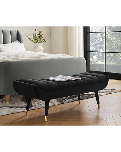 - With the elegant channel tufted design of this classic bench, you can give your area a modernized makeover. This item has a strong wood frame that is foam-padded and covered in a high-quality velvet fabric. From every angle, the stunning tufted cushion makes a visually pleasing look. The bench’s metal tipped tapered legs complete the appearance, making it a great compliment to any contemporary house.