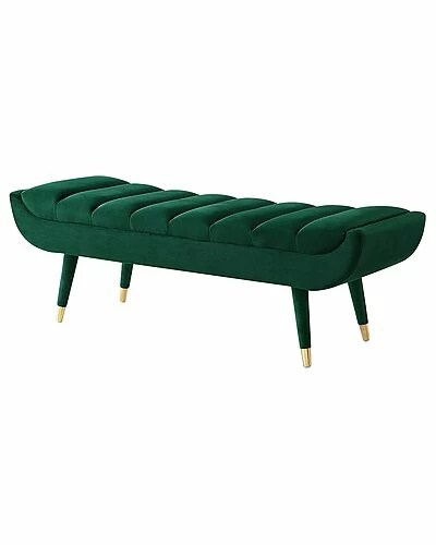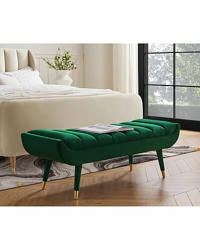 - With the elegant channel tufted design of this classic bench, you can give your area a modernized makeover. This item has a strong wood frame that is foam-padded and covered in a high-quality velvet fabric. From every angle, the stunning tufted cushion makes a visually pleasing look. The bench’s metal tipped tapered legs complete the appearance, making it a great compliment to any contemporary house.