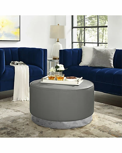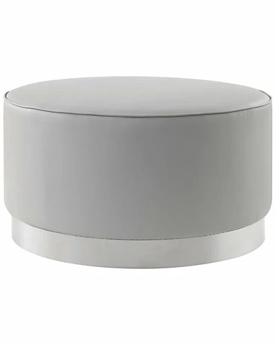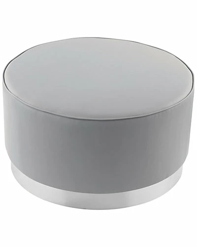 - Design details: This ottoman’s round silhouette blends effortlessly into any casual space. It is an accent piece that enhances the aesthetics of any modern household. Features a glossy stainless steel base design and comfortably upholstered top.