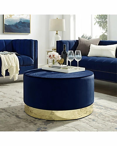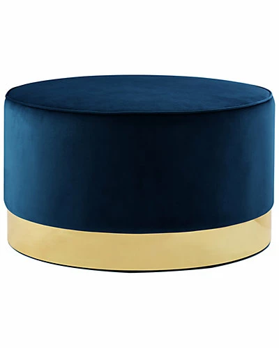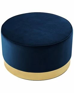 - Design details: This ottoman’s round silhouette blends effortlessly into any casual space. It is an accent piece that enhances the aesthetics of any modern household. Features a glossy stainless steel base design and comfortably upholstered top.